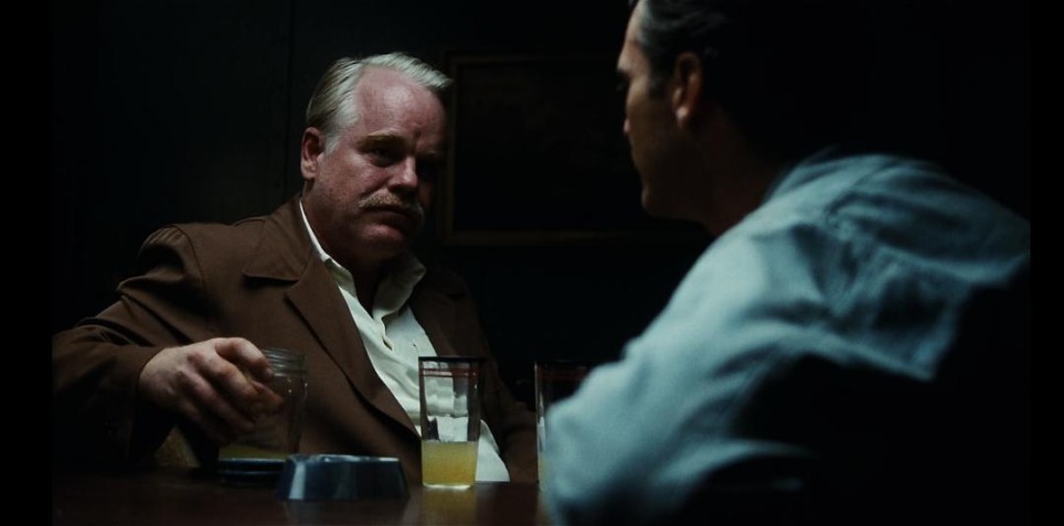 影片超越了简单的“邪教”猎奇,将新兴宗教形态视为一套精密的社会技术:它为无法言说的战争创伤提供叙事框架,为漂泊无依的主体提供临时身份,并通过高度仪式化的表演来建构一种脆弱的集体归属感。与此相对,《血色将至》展现的是一种前现代的、赤裸裸的原始积累与信仰崩塌后的暴力真空;而《大师》则将这种外部冲突内部化、微观化,将其浓缩于教主与信徒之间复杂的情感与权力动力学中。这两部作品构成了安德森关于“神的消退后,人类如何再造意义”这一终极命题的两种截然不同却又彼此映照的回答:前者以毁灭性的征服直面虚无,后者则以温顺的依附与精密的模仿来显影幻象。 影片中,兰开斯特·多德的权威并非源自神启,而是根植于一套高度娴熟的心理操控技术。他的教义并非追求形而上的真理,而是一套可操作、可复制的符号系统——“时间桥”并非为了穿越真实的过去,而是为了重构并掌控个体的记忆叙事。那场诡异的“processing”审讯仪式,其威力不在于揭示了什么客观真相,而在于通过语言的压力、重复的质询和不容置疑的指令,强行拆解奎克原有的混乱心智,并为其植入一套由“原因”组织所定义的新秩序。